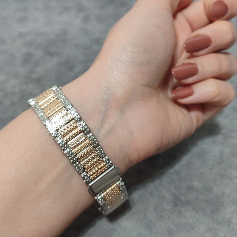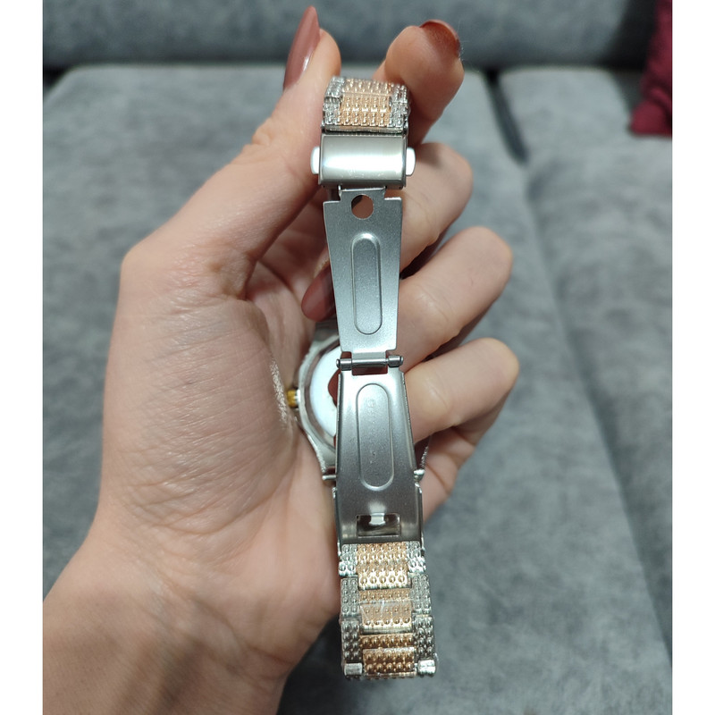 این ساعت دارای کیفیت ساخت خوب و بند آن فلزی و قفل آن کلیپسی ساده میباشدو دارای طرح پرنگین و شیکی میباشد که به راحتی با انواع لباس های شیک و مجلسی شما ست میشود.