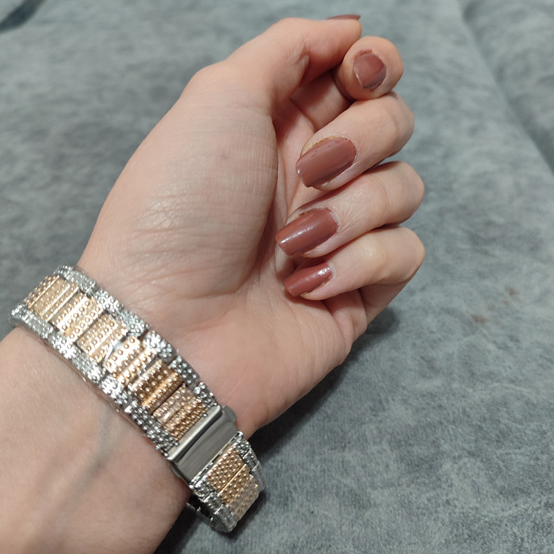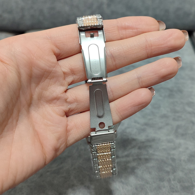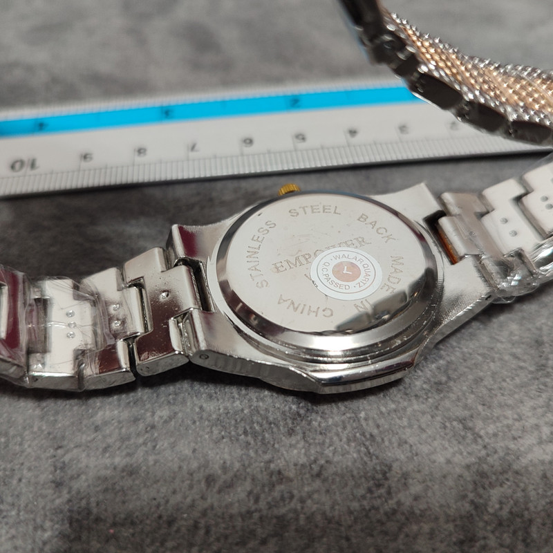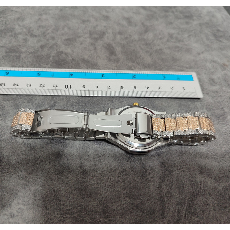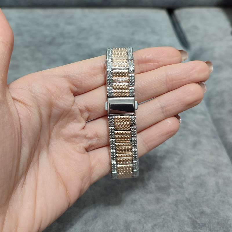 این ساعت دارای کیفیت ساخت خوب و بند آن فلزی و قفل آن کلیپسی ساده میباشدو دارای طرح پرنگین و شیکی میباشد که به راحتی با انواع لباس های شیک و مجلسی شما ست میشود.